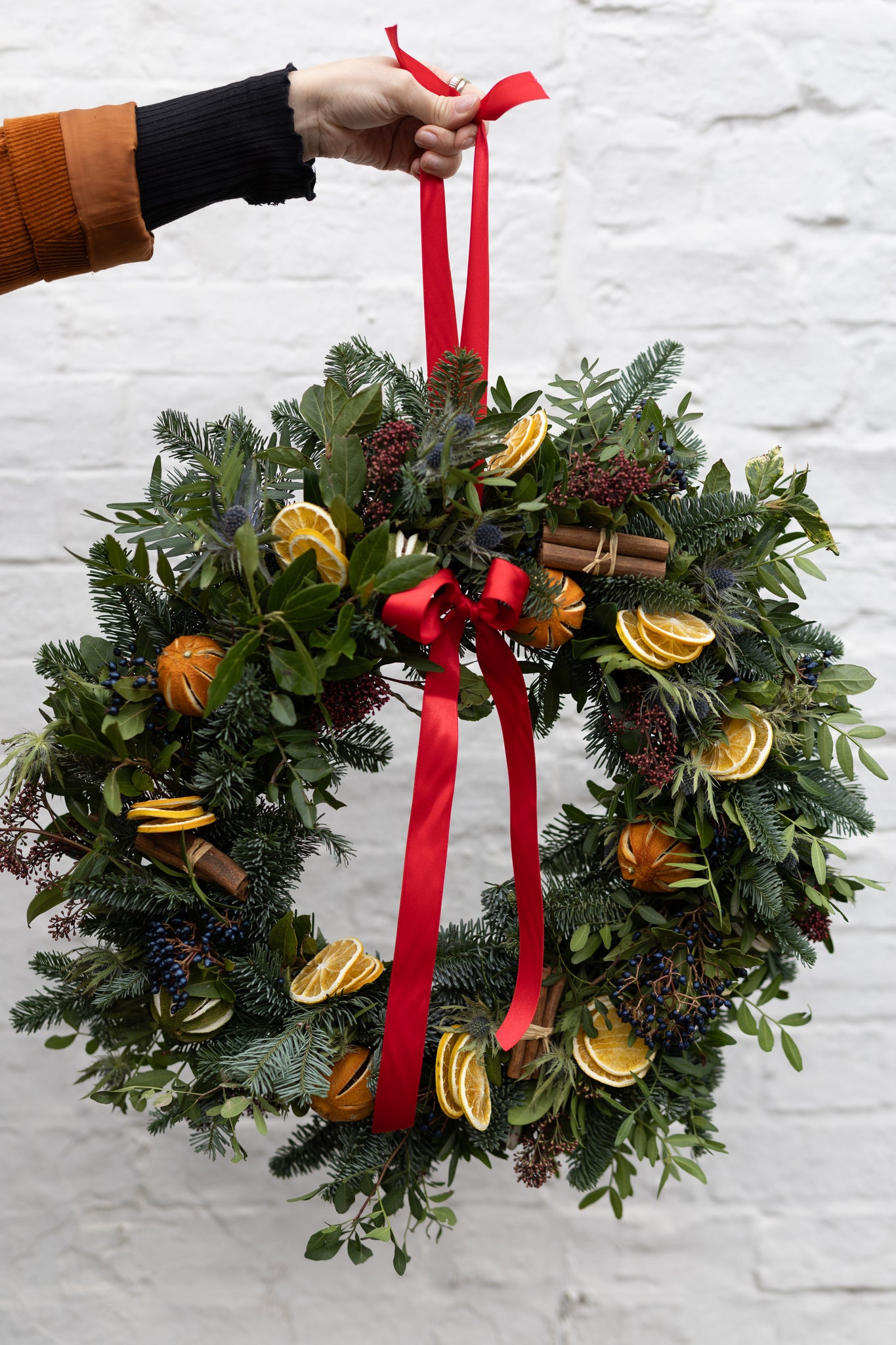 Our a traditional Christmas wreath does exactly what it says on the tin! Best seasonal foliage, a mixture of dried fruits, viburnum berries & thistles.