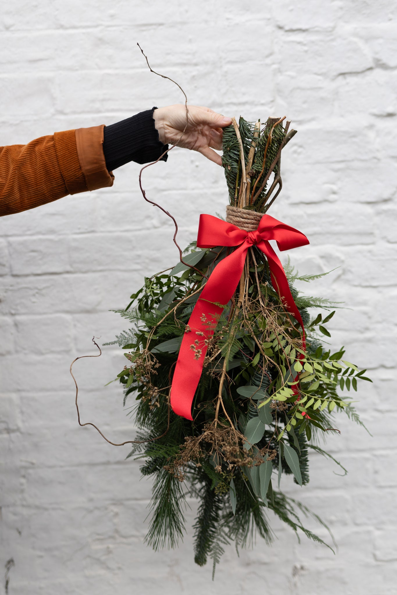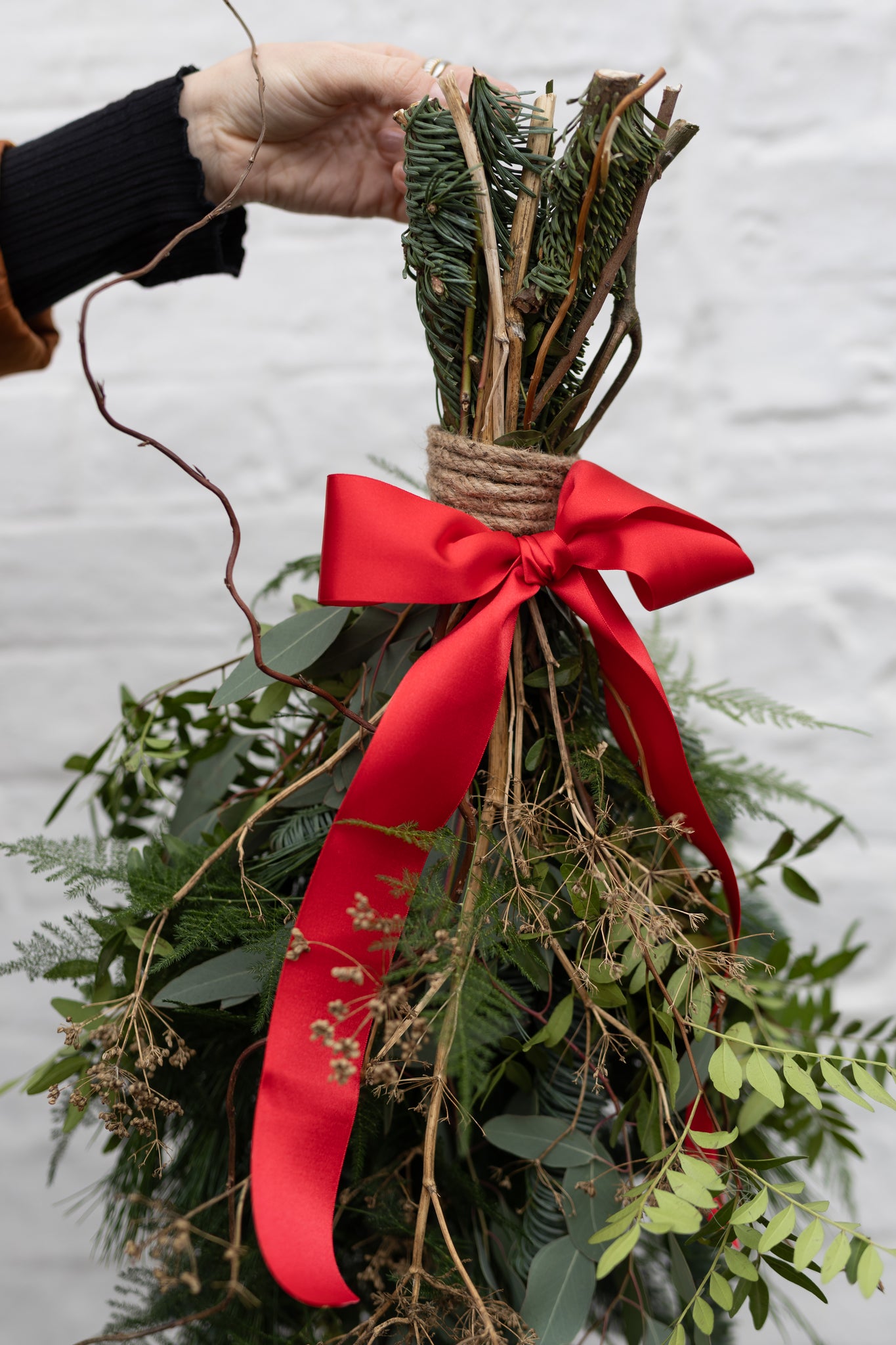 Made up of a mixture of the best seasonal foliage, dried stems & finished with a luxury satin ribbon.